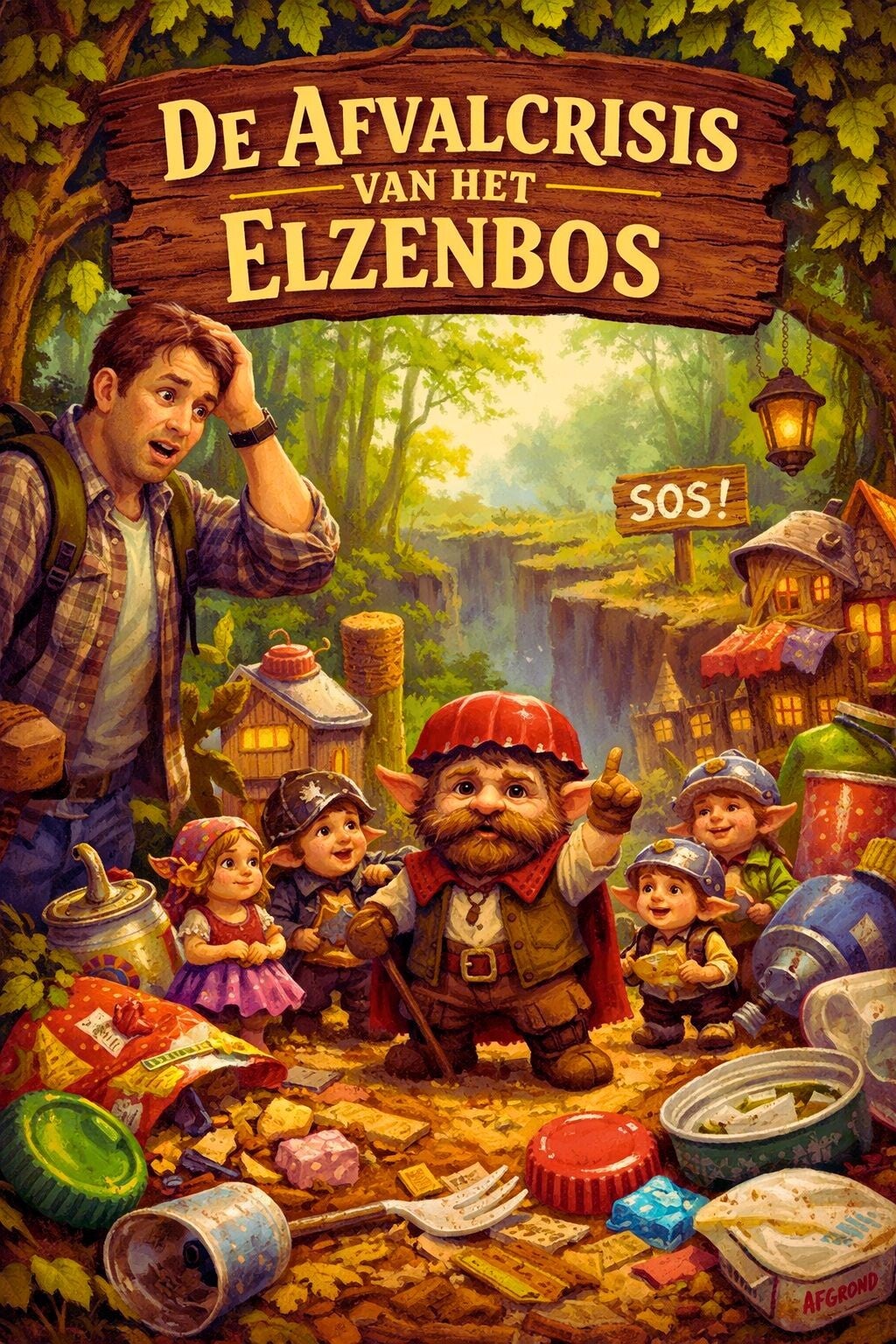 Herman keek omlaag en zag tot zijn verbazing een groepje piepkleine wezentjes tussen de wortels van een oude eik. Ze waren niet groter dan een meter, hadden puntige oren, jasjes gemaakt van snoeppapiertjes en droegen dopjes van frisdrankflessen als helmen.