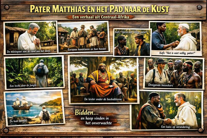 De zon stond laag boven de uitgestrekte vlaktes en dichte jungle van Centraal-Afrika toen pater Matthias zijn dag begon met gebed. Zijn missiepost, een eenvoudig bouwwerk van hout en leem, lag aan de rand van een klein dorp. Hij had hier jaren gewerkt—zieken verzorgd, kinderen onderwezen, en geprobeerd vrede te brengen in een wereld die verscheurd werd door ongelijkheid en hebzucht.