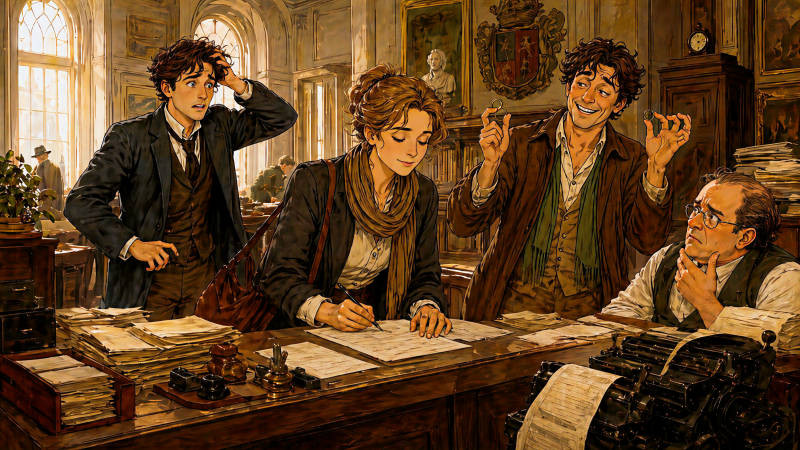 Toen notaris Van Heumen binnenkwam, werd het stil. Hij was dun, met een hoofd als een uitroepteken en een stem als een vastgelopen lade. Zijn aktetas leek ouder dan sommige aanwezigen.